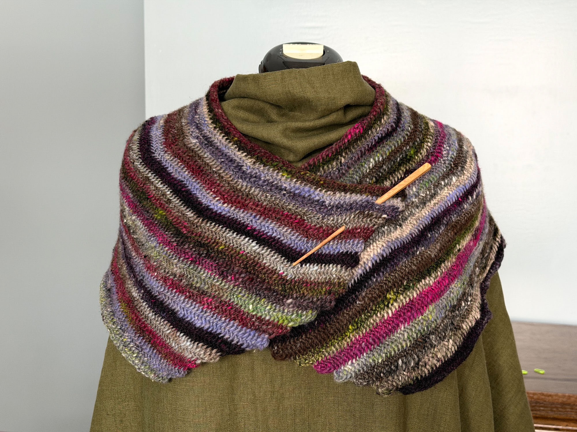 There’s a long color change in this yarn that worked really well. The stitch is Dalarna, which I chose for its interaction with adjacent rows.